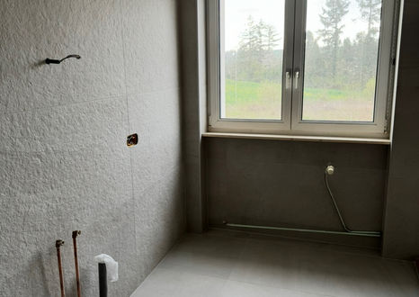 Cette pièce a été entièrement créée, depuis la préparation initiale des murs et du sol jusqu’à la pose finale des carreaux. Une attention particulière a été portée à la préparation des surfaces pour garantir une base solide et durable. Le carrelage choisi, mêlant textures modernes et tons naturels, a été posé avec une grande précision, apportant élégance et harmonie à l’espace.